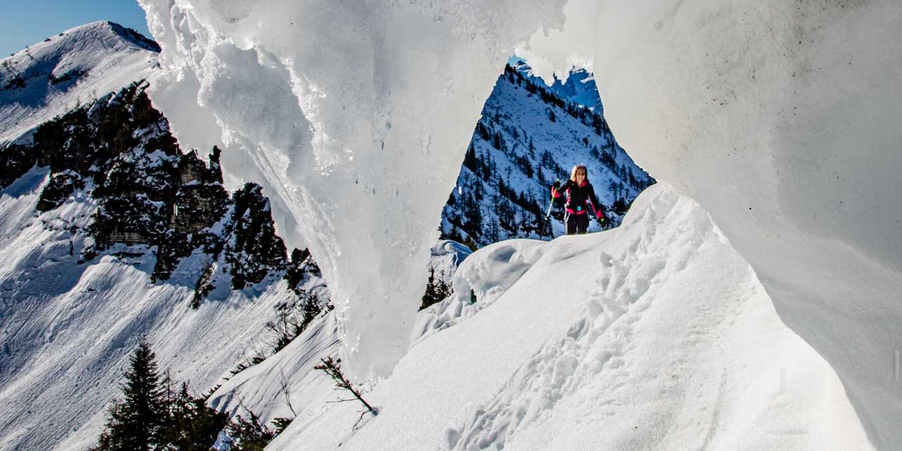 Jetzt am späten Nachmittag, sind unsere Schatten auf dem Schnee schon fast wieder so lang, wie am frühen Morgen. Da waren wir auf dem Weg von St. Koloman auf den Trattberg. Jetzt erreichen wir unschwierig über einen aussichtsreichen Grat mit dem Egelseehörndl unseren letzten Gipfel und blicken zurück: Erster, zweiter, dritter, vierter, fünfter, schon auf dem sechsten Gipfel stehen wir Heute! Ein großartiges, sehr zufriedenstellendes Gefühl! Wir schwingen die schönen Hänge hinab und mit einem letzten Gegenanstieg erreichen wir unser Ziel die Postalm. Es gibt nichts zu überlegen und wir gehen schnurgerade in eines der Lokale. Eins, zwei, Nein Stopp: Zwei Bier reichen, auch um eine so großartige Tour abzuschließen!